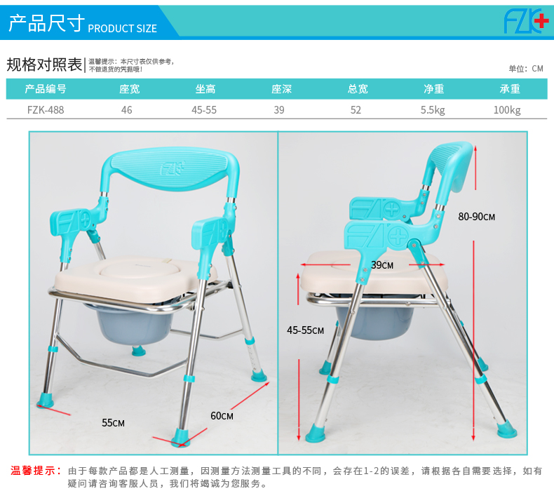 FZK-488 ALUMINUM FOLDING STAND-UP COMMODE CHAIR