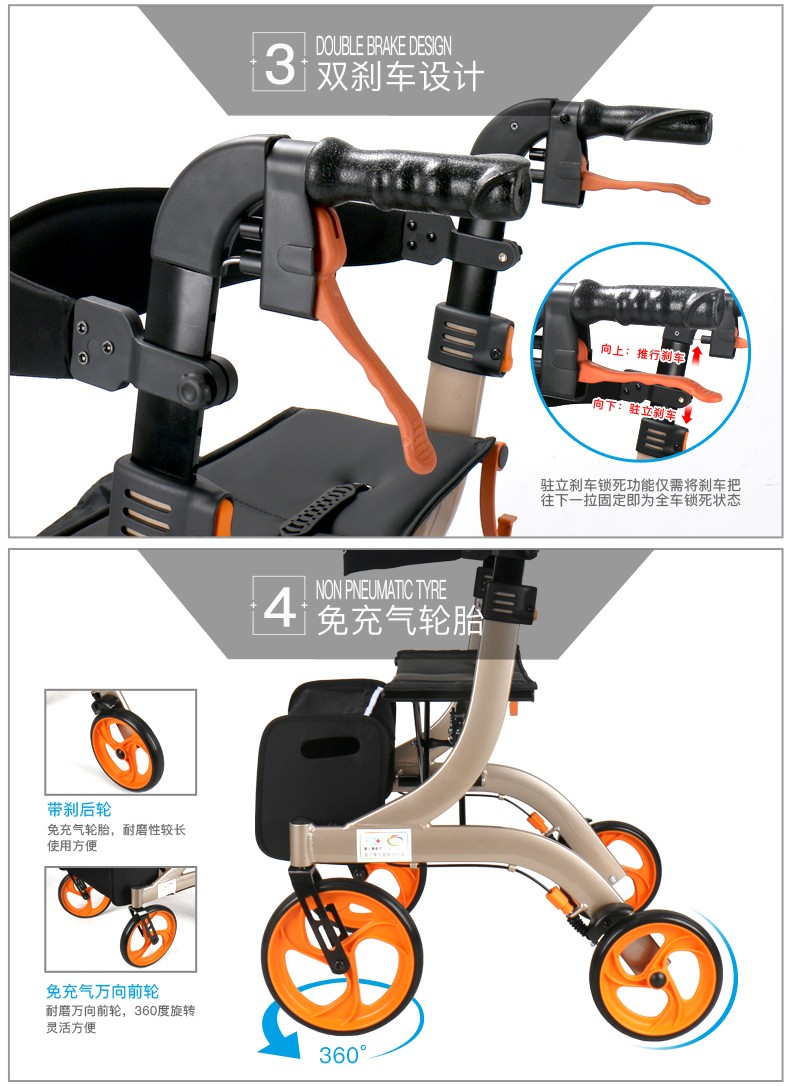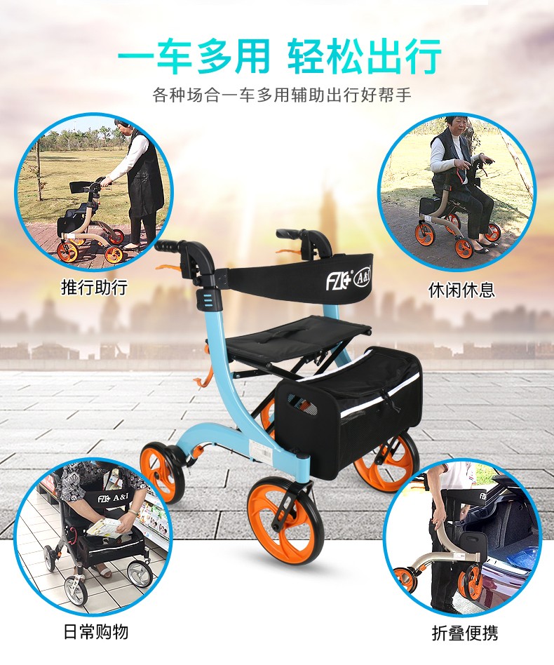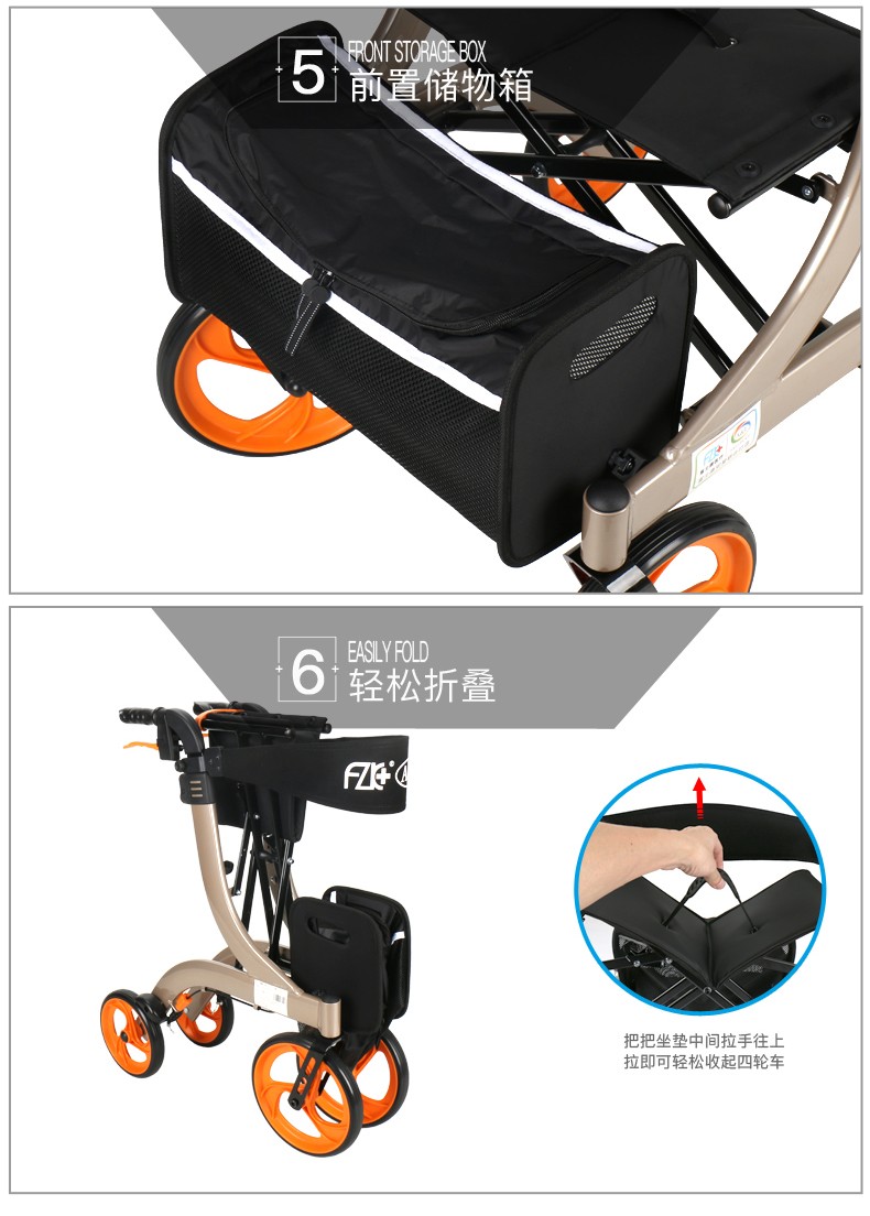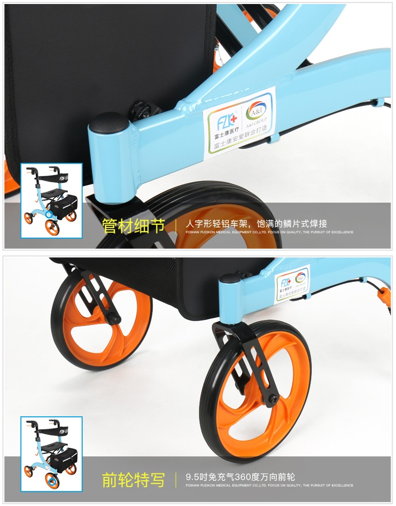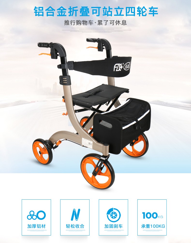 FZK-3104 DELUXE ALUMINUM STAND-UP FOLDING ROLLATOR