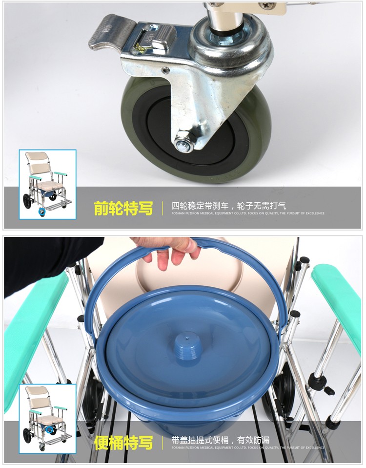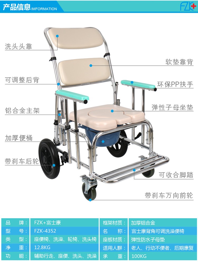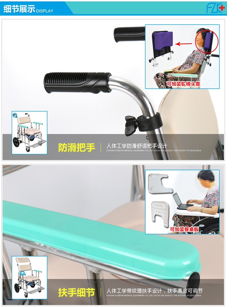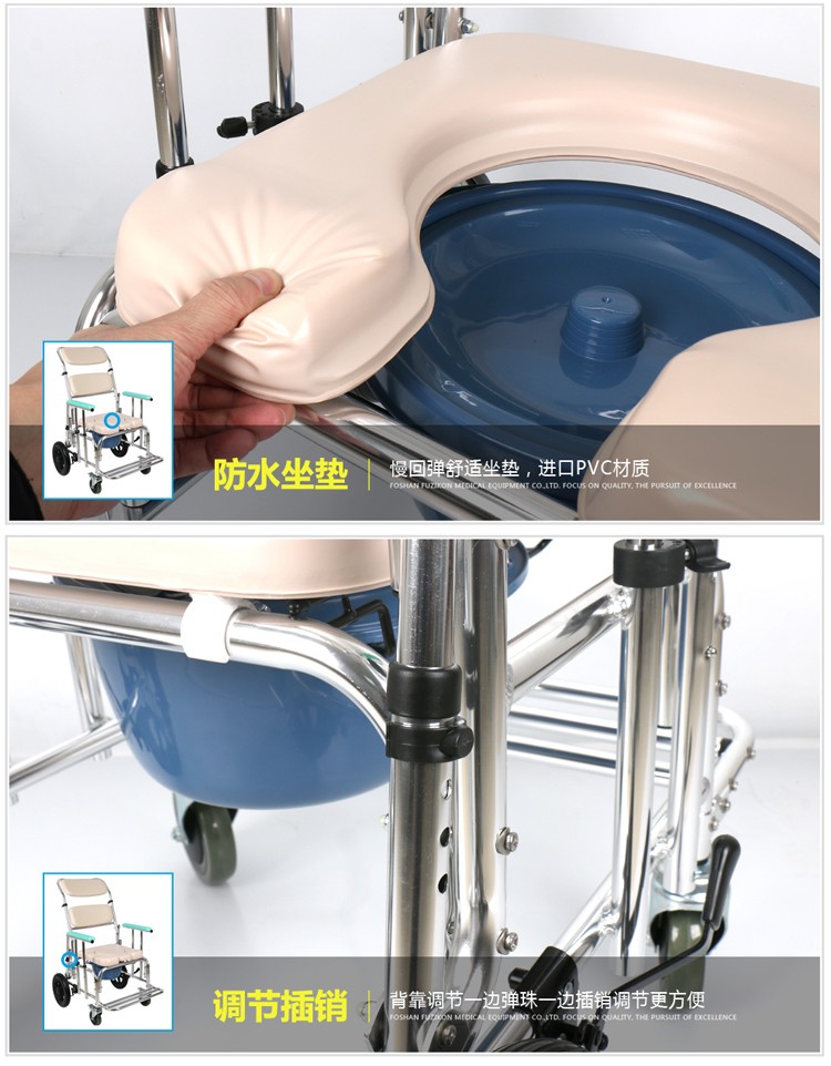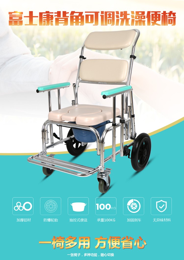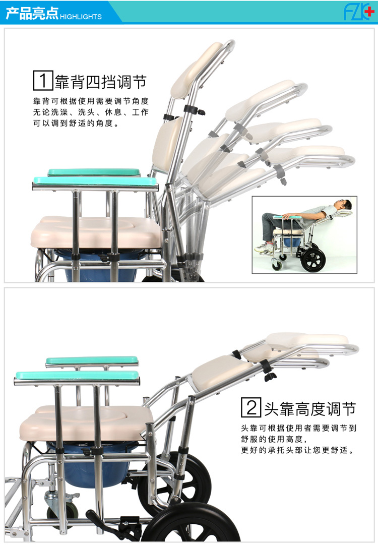 FZK-4352 ADJUSTABLE BACK ANGLE AND ARMREST COMMODE CHAIR